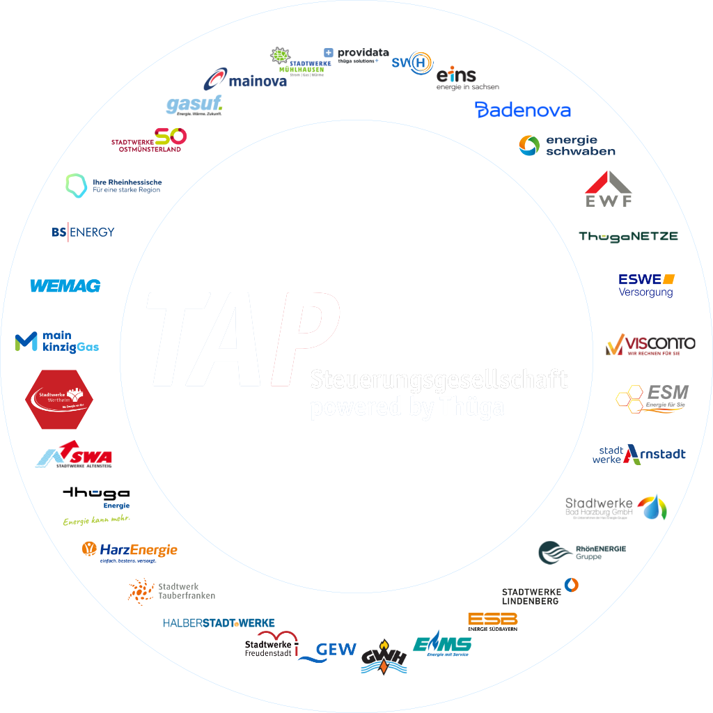 Als Steuerungsgesellschaft koordinieren wir dabei die Entwicklung und Weiterentwicklung der TAP-Plattform. Wir verbinden die Anforderungen und Erfahrungen der Stadtwerke und Energieversorger mit der technischen Expertise des Plattformbetreibers Accenture, um eine leistungsstarke, cloudbasierte Lösung für die Abrechnung und Verwaltung aller energiewirtschaftlichen Prozesse zu schaffen.